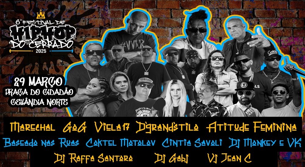 Com quase 20 anos de história, o Festival Hip Hop do Cerrado retorna para sua 6ª edição. Totalmente gratuito, a programação reúne atrações nacionais e